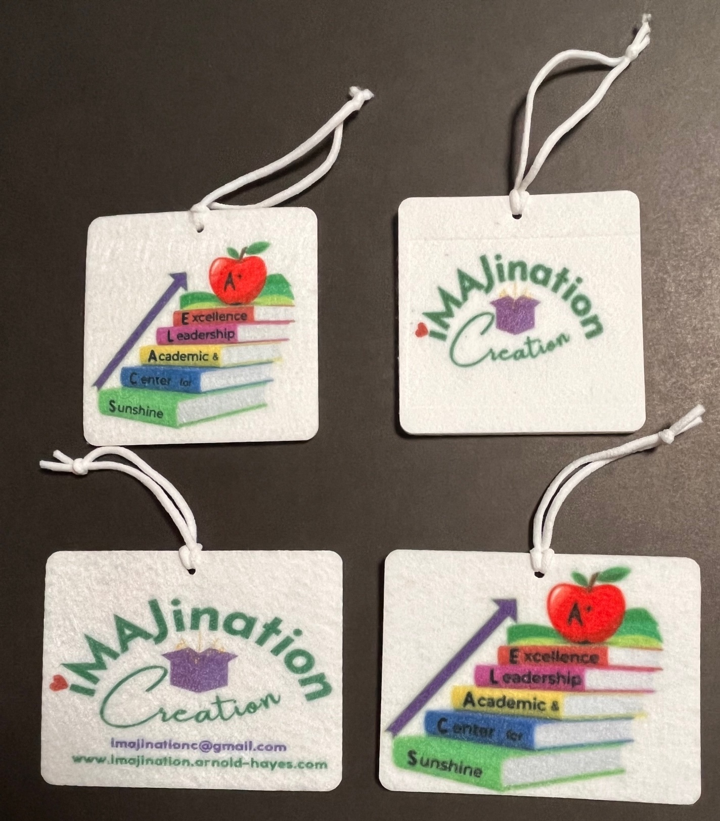 Personalized Air Fresheners with unique fragrance that fills the air with calming scent. Designed with customized text with funny characters or colorful logos. Perfect for simple office giveaways!